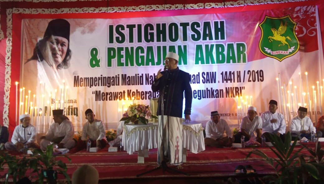 Sumenep – Pemerintah Kabupaten Sumenep menggelar Istighasah dan Pengajian Akbar dalam rangka memperingati Maulid Nabi Muhammad SAW, di depan Masjid Jamik Sumenep, Rabu malam, 9 Oktober 2019.